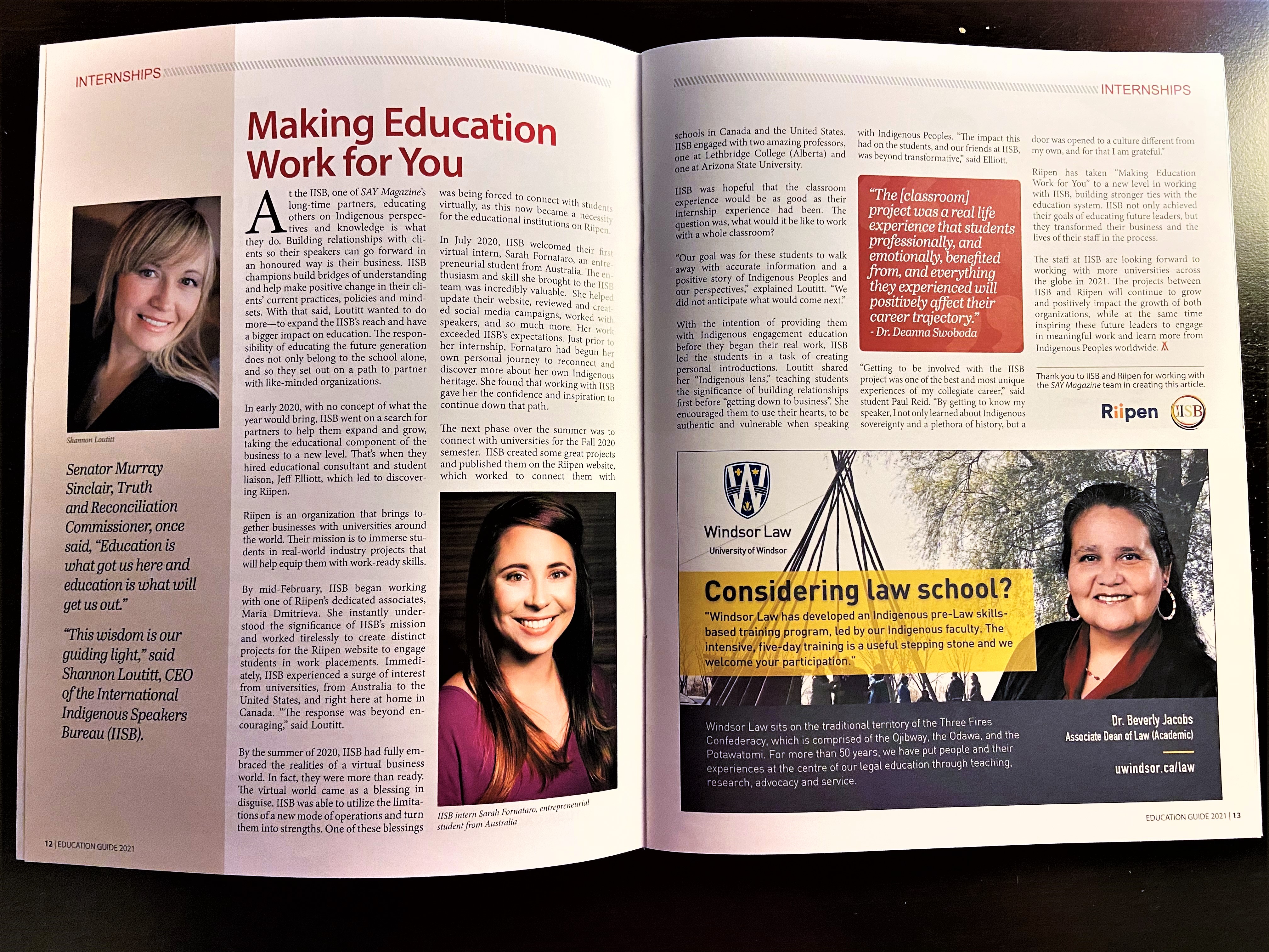 “At the IISB, one of SAY Magazine’s long-time partners, educating others on Indigenous perspectives and knowledge is what they do. Building relationships with clients so their speakers can go forward in an honoured way is their business. IISB champions build bridges of understanding and help make positive change in their clients’ current practices, policies and mindsets.